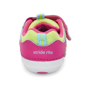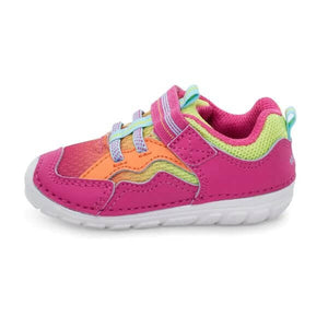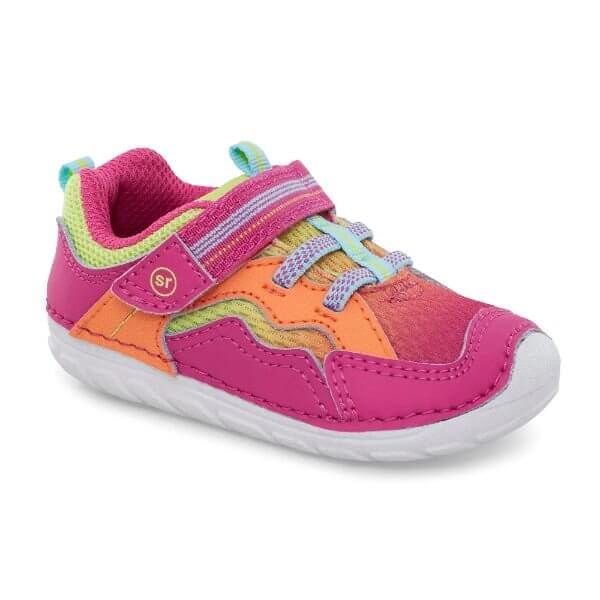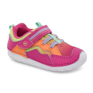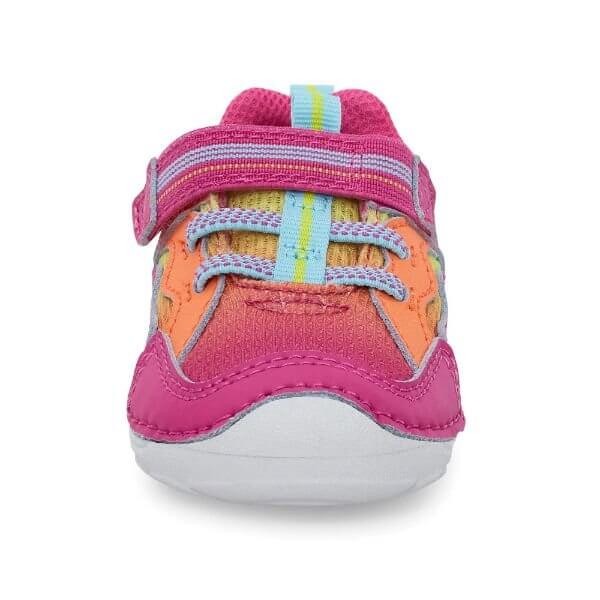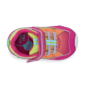 - Baby boy's and girl's sneaker made with leather and textile featuring hook and loop strap closure