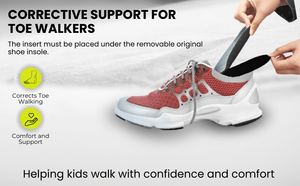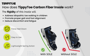 For Toe Walkers; These insoles feature a carbon fiber footplate that offers gentle support to help correct idiopathic toe walking in children. Packaging includes a left and right insole (Pair)
