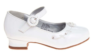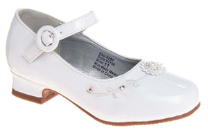 The Josmo Mary Jane dress shoes is an adorable option for dress occasions with its polished upper and floral accent. Buckle closure. Keep your little lady dancing through those special occasions with these sweet shoes that keep her toes comfy and her ensemble sweet right down to her feet.