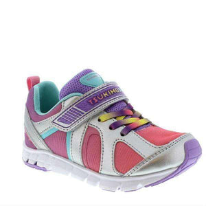 A wash of bright, fun colors brings instant-favorite appeal to a machine-washable sneaker designed with a lightweight, barefoot feel. Elastic laces and a hook-and-loop bridge strap make it easy to put on and take off, while a sturdy heel cup and a grippy rubber tread provide stability and traction in any activity.