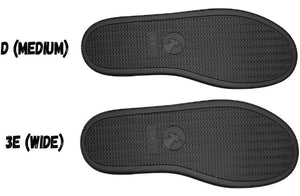 Coming in a D-width for medium and 3E-width for wide, the sizes start at a US Men's 7 and go to a US Men's 14, with 1/2 sizes through size 12. Enjoy!