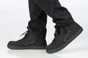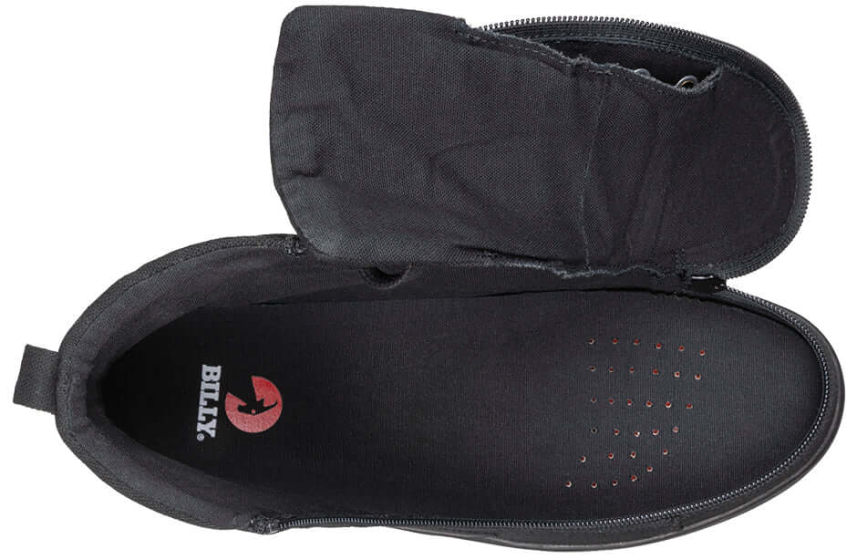 Inspired by a core-skate look, the Men's Black to the Floor BILLY CS High Tops are sure to deliver. These trending kicks embrace nostalgia, yet remain true to current style. Coming with functional laces for a custom fit, removable insoles for added depth, and a wraparound zipper for unmatched convenience, youre going to feel good when you Step In!