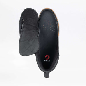 Designed with a classic skate-inspired look, these high-tops blend retro vibes with modern comfort. Featuring sleek black faux leather and a gum rubber outsole, they offer a sharp contrast that pops. The functional laces provide a customizable fit, while the wraparound zipper ensures easy entry. Removable insoles offer added depth and the option to use custom orthotics, making the Men's Black/Gum BILLY CS High Tops as practical as they are stylish.