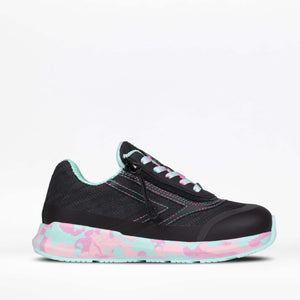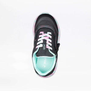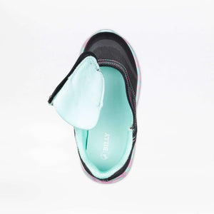 Created in collaboration with Boston Orthotics Prosthetics, the Midnight Mermaid BILLY Goat is the perfect blend of style and functionality. With a sleek black knit upper and vibrant pink and turquoise stitching, this AFO-friendly shoe adds a pop of color with its bold sole and laces. Featuring a short wrap zipper for easy on-and-off and removable insoles for customizable depth, the Goat is designed to offer all-day comfort and support.