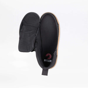 Designed with a classic skate-inspired look, these high-tops combine retro flair with modern comfort. The sleek black faux leather and gum rubber outsole create a bold contrast that stands out. With functional laces for a customizable fit and a wraparound zipper for easy on-and-off, these shoes are as practical as they are cool. Removable insoles provide extra depth and the option for custom orthotics, making these Black/Gum BILLY CS High Tops perfect for all-day wear.