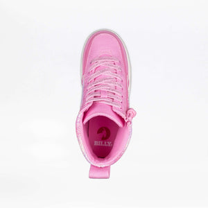 Featuring a mix of soft pink canvas and iridescent glitter, these shoes are designed to catch the light and your eye. The ombre color fade adds a stylish gradient effect, perfectly complementing the glitzy shine. Built around our original Classic Lace silhouette, the Pink Glitz BILLY Classic Lace High Tops offer a timeless fit and feel with adjustable laces for a secure, personalized fit.