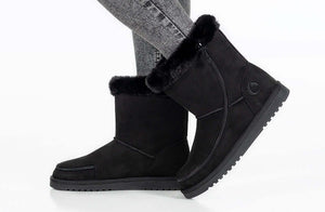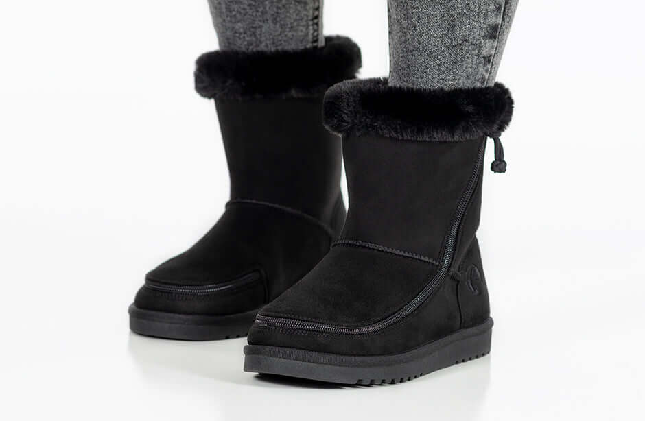 Nothing gets more cozy for the feet than the Women's Black BILLY Cozy Boots. These on-trend boots will complete every outfit. And with the wraparound zipper, simply Step In! to unmatched convenience.