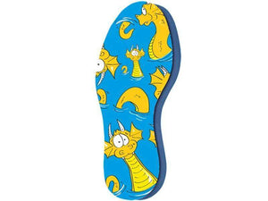 The cushioning kids insole made of latex foam and with our little, smart dragon Pedi. Vegan. No matter if playing with friends or frolicking around in the garden: the feet of the little ones already have to bear a lot of weight and stress. This is why it is much more pleasant for feet to walk on a soft underground. When there is a funny cartoon inside the shoe, children enjoy this experience even more. pedag SOFT is a cushioning latex insole coated with a comfortable textile surface that our smart pedag dragon Pedi is printed on. It will accompany your child ? step by step. The perforations and the grooved profile of the insole improve the circulation of the air; the pleasant lime scent provides additional freshness inside the shoe. Our children?s insole pedag SOFT is washable and therefore extremely hygienic.